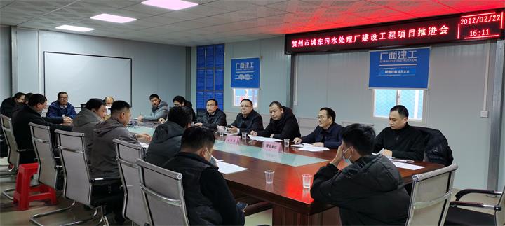 在項目現(xiàn)場,黃俊一行仔細察看了項目復工復產(chǎn)情況,并召開賀州市城東污水處理廠建設工程項目推進會。會上,黃俊認真聽取施工單位關于項目復工復產(chǎn)工作情況及項目推進過程中遇到的困難和問題的匯報,并提出指導意見。