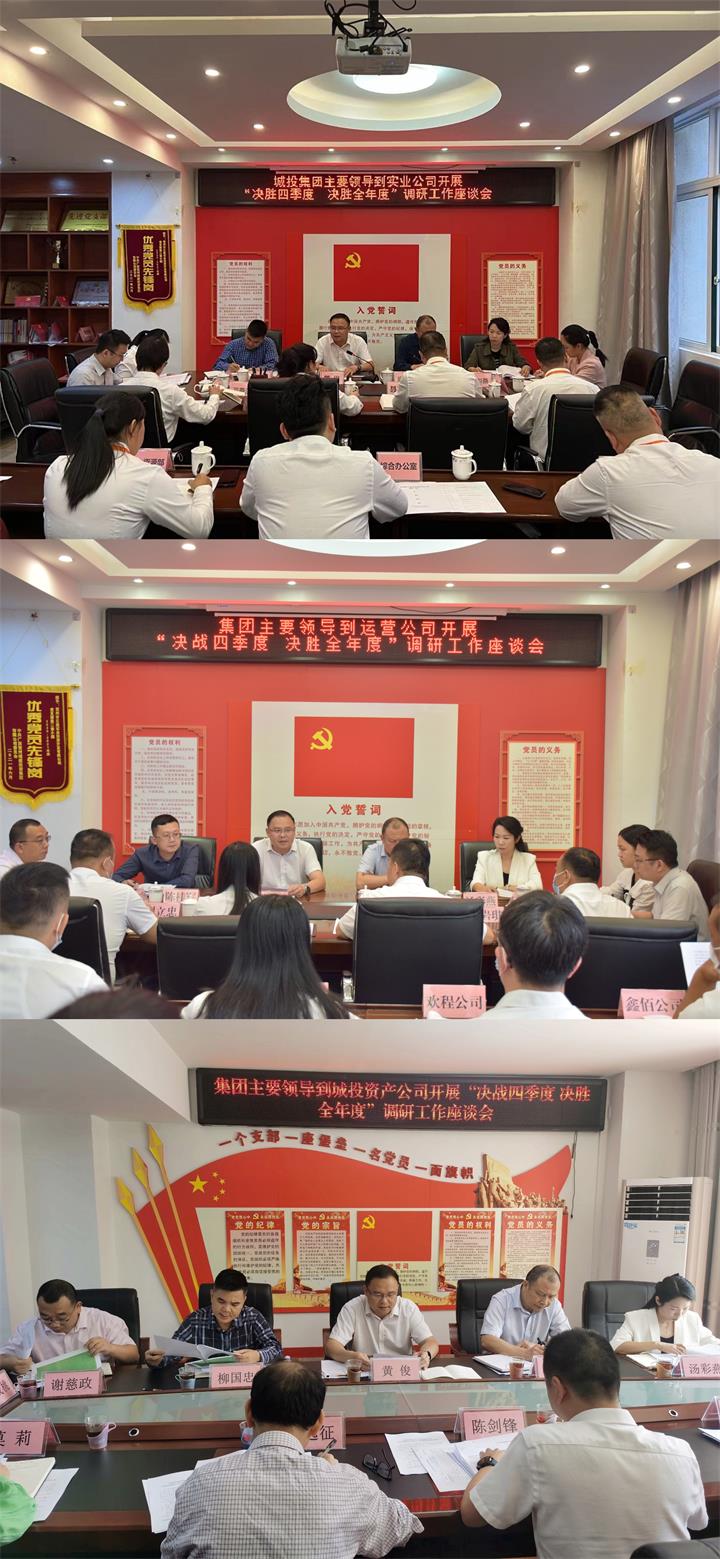 就做好四季度工作,黃俊要求,一要切實加強班子建設(shè)和干部隊伍建設(shè)。各子公司領(lǐng)導(dǎo)班子成員之間要在共識中求團結(jié),在信任中求融洽。大事講原則,小事講風格,相互尊重、相互諒解,自覺維護班子的團結(jié)。要抓好干部隊伍建設(shè),提升干事創(chuàng)業(yè)激情,打造一支想干事、能干事、干成事的干部隊伍。二要全面完成經(jīng)營業(yè)績考核指標。經(jīng)營指標是檢驗工作成效的重要標尺,企業(yè)搞得好不好,關(guān)鍵還是看經(jīng)營指標。各子公司要以時時放不下心的緊迫感,強化經(jīng)營理念,把各項經(jīng)營指標抓在手上,壓實責任,強化舉措,確保不折不扣完成集團下達的年度經(jīng)營目標任務(wù)。三要統(tǒng)籌抓好各項重點工作落實。各子公司要聚焦工作重點,統(tǒng)籌抓好“六大板塊業(yè)務(wù)”拓展、建市20周年項目和重大項目、項目策劃包裝、融資化債、招商引資、資產(chǎn)注入盤活、審計問題整改等重點工作,確保各項重點工作落細落實落到位。四要扎實推進黨建工作和清廉企業(yè)建設(shè)工作。要學習好、宣傳好、貫徹好黨的二十大精神,強化思想政治引領(lǐng),推動高質(zhì)量發(fā)展取得新成效。要全面完成基層黨建“五基三化”內(nèi)容,持續(xù)增強基層黨組織政治功能和領(lǐng)導(dǎo)力、組織力、執(zhí)行力。要深入開展“城投清風”七大專項行動,著力打造特色清廉品牌,營造政治生態(tài)清朗健康、經(jīng)營管理清廉高效、干部職工清正有為的清廉城投。