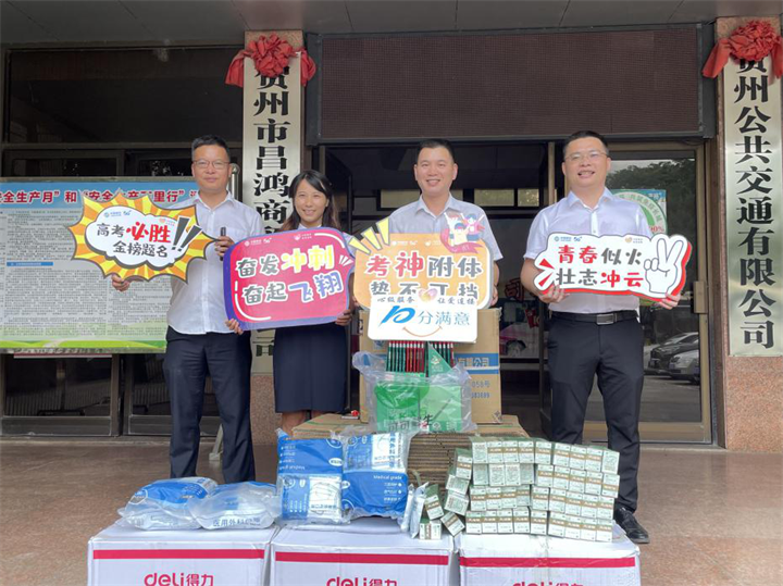 為確??忌軌蝽樌M(jìn)行考試,公交公司聯(lián)合賀州移動公司,準(zhǔn)備了“愛心助考物資”箱,內(nèi)放置2B鉛筆、口罩、風(fēng)油精、文具袋、扇子等考生必備的應(yīng)急物資,以供考生應(yīng)急使用。