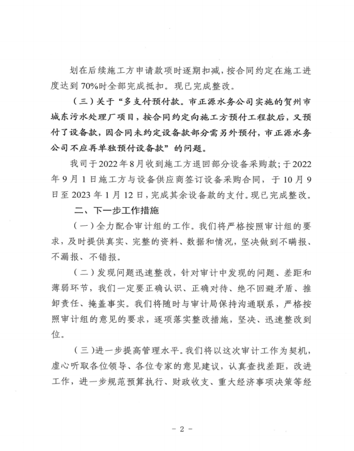 上一篇:賀州市城投水務(wù)公司關(guān)于賀州市城東污水處理廠建設(shè)工程跟蹤審計發(fā)現(xiàn)問題整改情況的報告