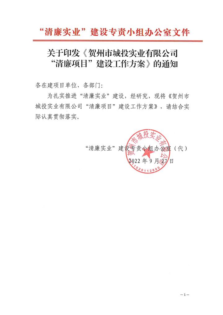 賀州城投集團(tuán)實(shí)業(yè)公司“清廉實(shí)業(yè)”建設(shè)專責(zé)小組辦公室