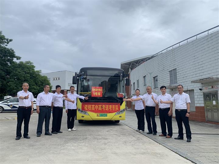 高考期間,公交公司共調度19臺公交車,作送考專用車,在桂梧高中、賀州市第五高級中學、賀州外國語學校等考點接送考生往返,共護送考生4994人次。送考車輛均統(tǒng)一張貼標識,每輛車輛均配備1名秩序維護員引導車輛安全進出、引導考生有序上下車并處理現(xiàn)場應急突發(fā)事件,為高考學子提供了安全、舒適、便捷的送考服務。
